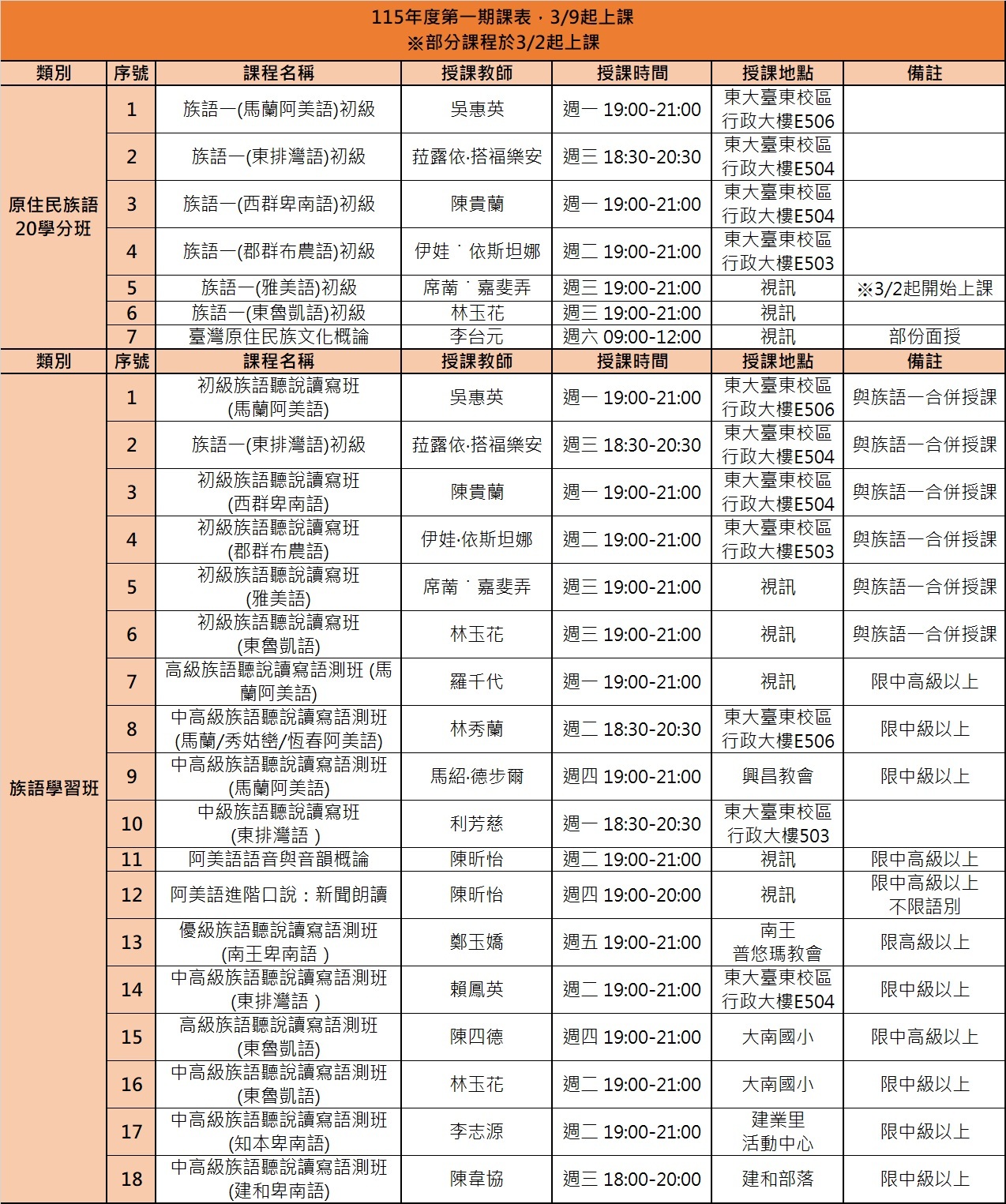 原住民族語言學習中心 115學年度第一期課程開放報名